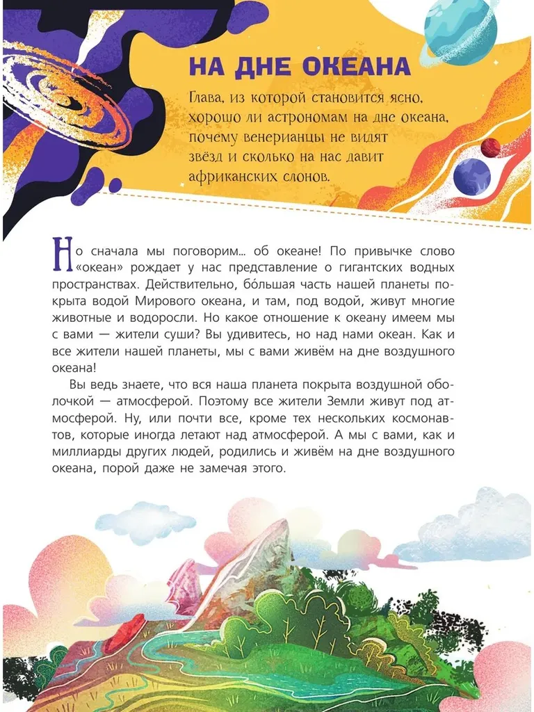 Есть сотни вопросов, которые мы время от времени задаём себе сами, но обычно не докапываемся до ответа. Что такое небо, отчего оно голубое? Почему облака белые, а солнце на закате красное? Давит ли на нас воздух? Почему мерцают звёзды? Что ждёт людей, когда они полетят на другие планеты? Опасны ли метеориты? В чём разница между кометами и астероидами? Где рождаются звёзды? Что такое чёрные дыры? Где на планете можно увидеть метеориты? Сможет ли человек когда-нибудь жить на астероиде? В чём разница между звездой и планетой, кометами и астероидами? Как и где рождаются звёзды? Существуют ли звёзды в 1000 раз массивнее Солнца? Как измерили огромные расстояния до звёзд и галактик? Как спастись от астероида? Чем грозят нам кометы? Что такое квазар и пульсар?...