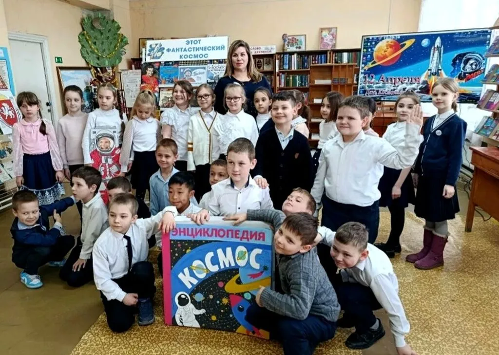 Юные читатели приняли участие в викторине «Космическая азбука» и закрепили свои знания о вселенной, разгадывали загадки и слушали стихи. Мероприятие сопровождалось тематическими играми – ребята выступали в роли планет Солнечной системы и вращались вокруг Солнца, запускали на скорость космические корабли, выполняли космическую зарядку, справлялись с конфетами в «космических» рукавицах и сохраняли равновесие после раскручивания в импровизированной центрифуге.
