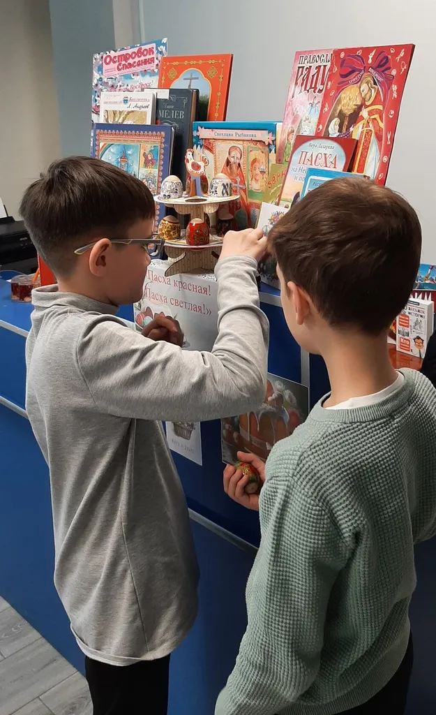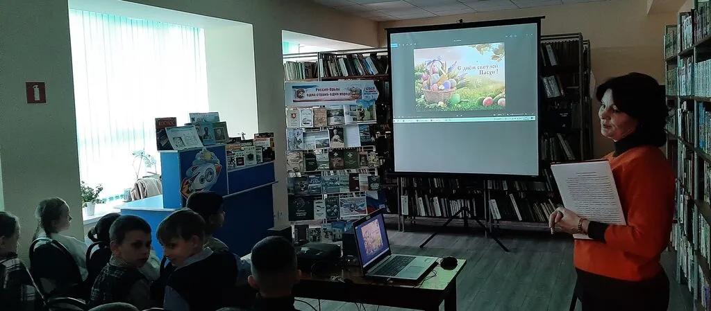 На старшем абонементе с учащимися 5-А класса МОУ «СШ №5» прошел православный час «Традиции светлой Пасхи». Ребята познакомились с историей праздника, с пасхальными традициями и обычаями наших предков, сохранившимися до наших дней. Юные читатели узнали, что традиционный подарок на Пасху – крашеное яйцо, как символ зарождения новой жизни. Участники мероприятия рассказали о том, как в их семье отмечают Пасху, поделились секретами украшения пасхальных яиц. Но каковы бы ни были традиции и обычаи, суть праздника Пасхи везде одинакова. Она несёт людям свет, любовь и надежду, которую сложно переоценить. А завершилась встреча обзором книжной выставки «Пасха красная! Пасха светлая!», на которой были представлены книги о празднике, о его народных традициях и обычаях, а также художественные произведения пасхальной тематике, а украшают выставку пасхальные атрибуты - крашеные яйца, веточки вербы, поделки, сувениры, сделанные руками читателей.